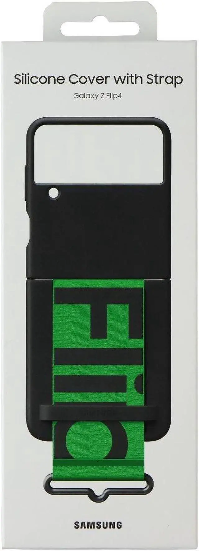 SAMSUNG Silicone Strap Cover for Samsung Galaxy Z Flip4 Series Smartphones. Black and Green Version.