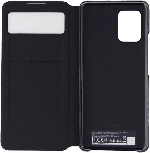 The Samsung Smart S View Wallet Cover for Galaxy A42 5G Smartphones. Black version. Model: (EF-EA426PBEVZW).