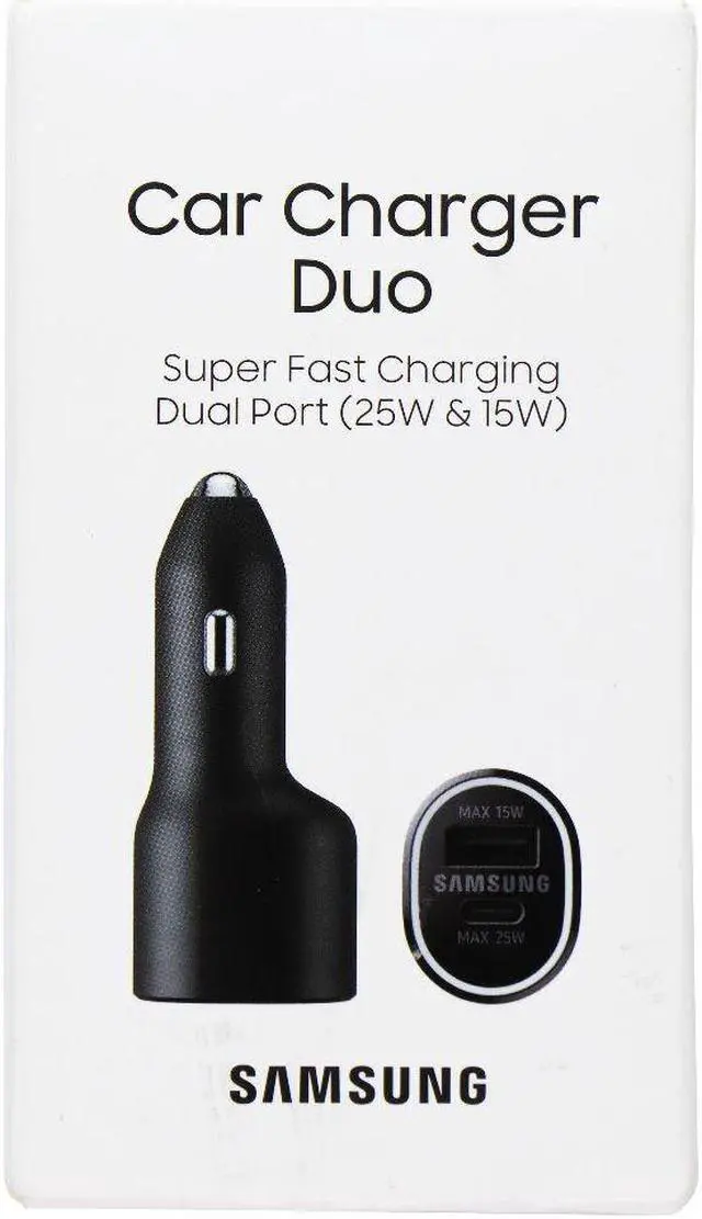 Features:USB Type-C and USB Type-A car chargerUp to 25W of charging powerSuper-Fast Charging compatibleCharge 2 devices simultaneouslyDual-Port USB Car Charger: This Samsung power adapter features a USB Type-C port capable of up to 25W output for super-fast charging, and a USB Type-A port with a maximum 15W output, providing a total of 40W charging power.Compact and Versatile: Charge two devices simultaneously with this space-saving car charger, making it convenient for you and a friend or charging a pair of your devices at once while on the road.