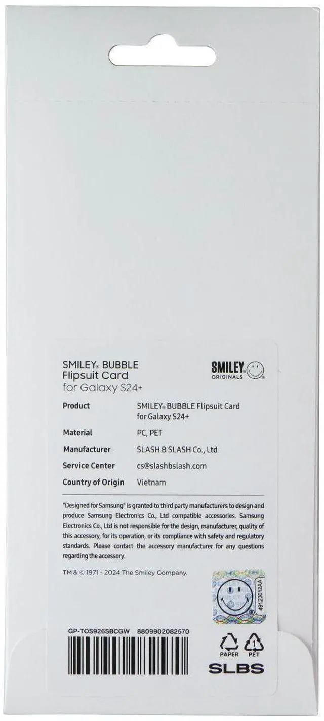 Features:Card to insert into the FlipSuit case of Galaxy S24+Smiley Bubble Themed CardsSlip it into the Galaxy S24+ FlipSuit case. Thanks to the NFC technology, the display will see the Marvel Venom themed backgroundBrand: Samsung