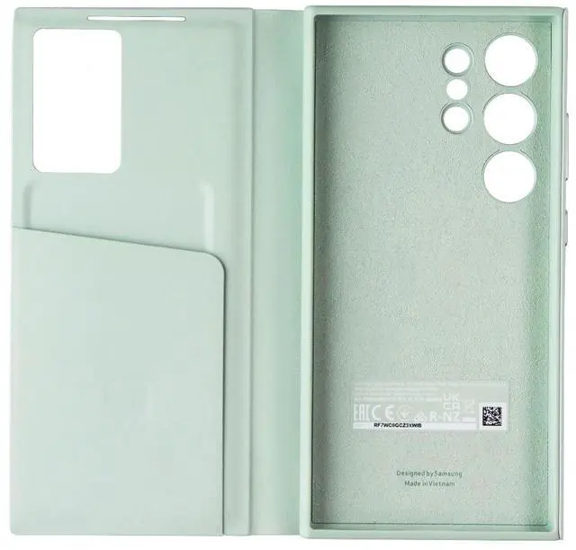 The Samsung Smart View Wallet Case for Galaxy S24 Ultra Smartphones. Light Green Version. Model: (EF-ZS928CGE)