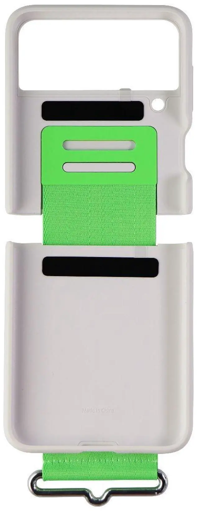 The Official Samsung Silicone Cover with Strap for Galaxy Z Flip3 5G Smartphones. White and Green version. Model: (EF-GF711TWEGUS).
