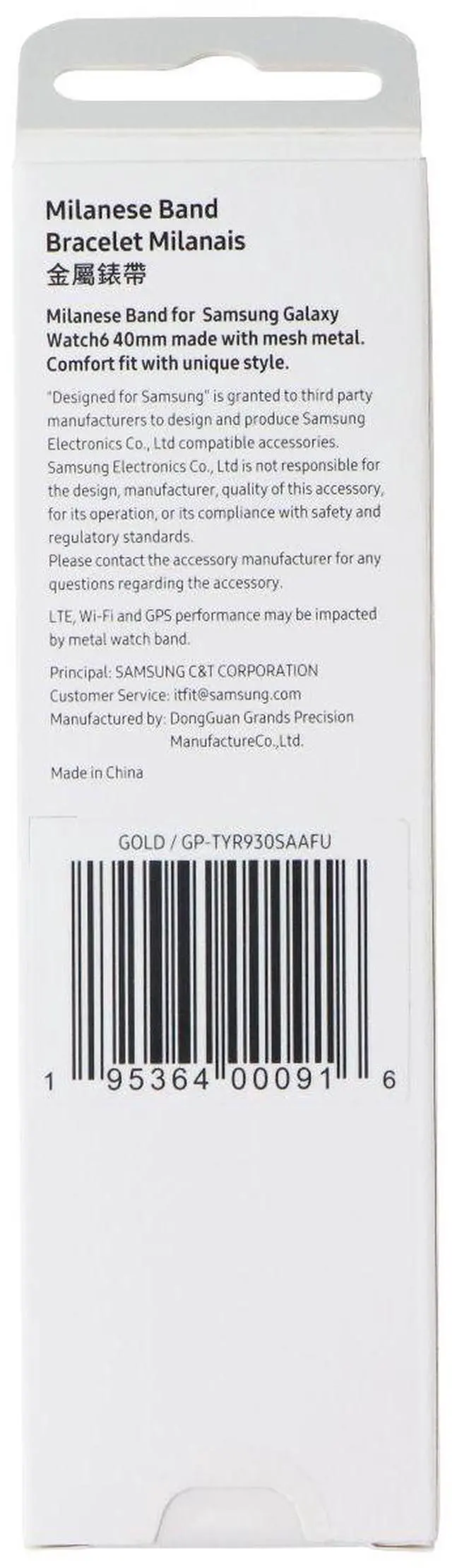 The Samsung Milanese Band for Galaxy Watch 6 Smartwatches. Model: (GP-TYR930SAAFU). Small/40mm in Gold Color.