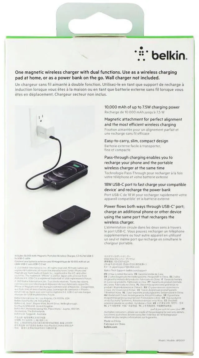 KEY FEATURESMAGSAFE COMPATIBLE: The Belkin BoostCharge Magnetic Power Bank can fast charge Apple iPhone 14, iPhone 13 & iPhone 12 series phones with speeds up to 7.5W, or connect directly using included USB C cable to charge at up to 18W of power. EXTRA LONG BATTERY LIFE - With a capacity of 10, 000 mAh this MagSafe compatible battery pack provides up to 34 hours of video playback* for iPhonePOWERFUL
