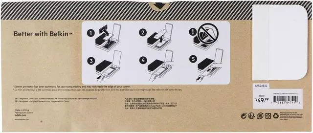 The Belkin ScreenForce Pro TemperedCurve Screen Protector for Galaxy S22. Pack of 5 Screen Protectors. Bulk Packaging.