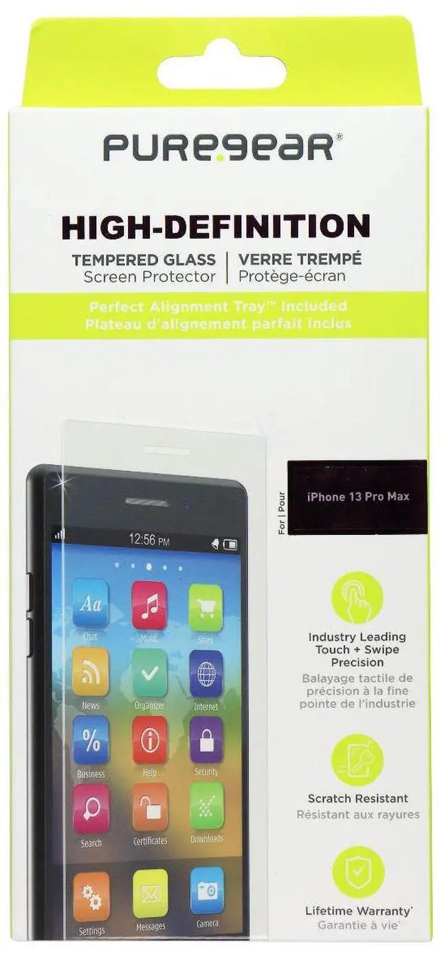 PureGear High-Definition Tempered Glass for Apple iPhone 13 Pro Max - Clear is designed to protect your device from scratches and drops. The tempered glass is made from a special material that is shatterproof and scratch-resistant. The installation is easy and the glass is designed to fit perfectly on your device.