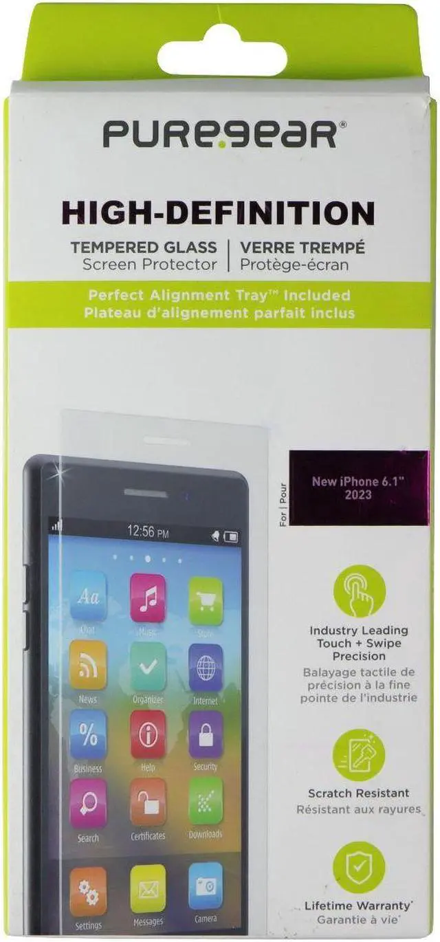 The PureGear High-Definition Tempered Glass Screen Protector for Apple iPhone 15 Smartphones.