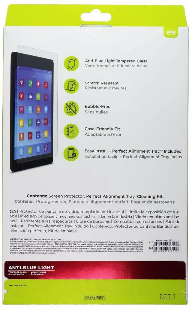 The PureGear Anti-Blue Light Tempered Glass Screen Protector for Apple iPad 10th Gen Tablets.