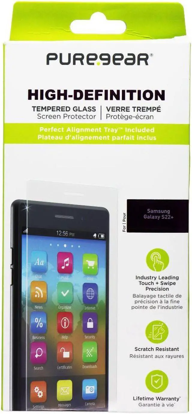 The PureGear High-Definition Tempered Glass for Samsung Galaxy S22+ (Plus). Clear version.
