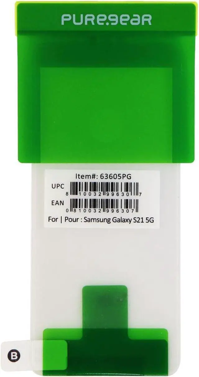 PureGear Tempered Glass Protector for Samsung Galaxy S21 5G Smartphones. Clear glass design.