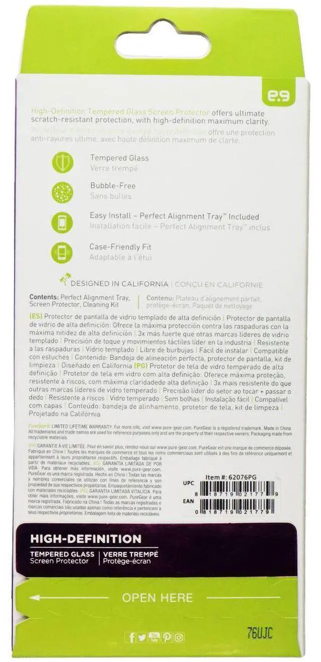 PureGear High-Definition Tempered Glass for Alcatel A50 Smartphone, Clear version.