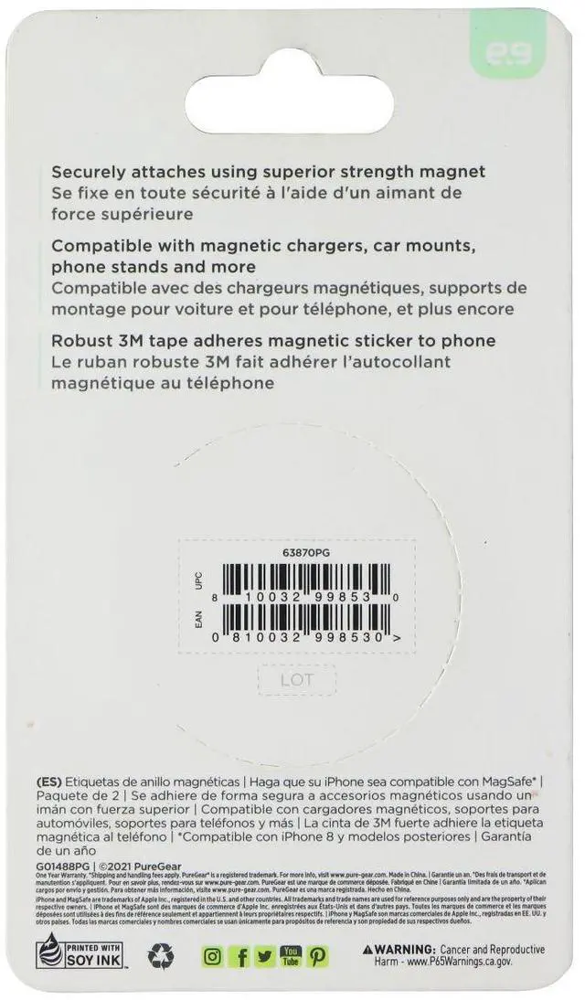 Features:Adds Magnets for Magsafe Compatible Chargers (Does not enhance charging).Compatible with magnetic chargers, car mounts, phone stands and moreRobust 3M tape adheres magnetic sticker to phone.