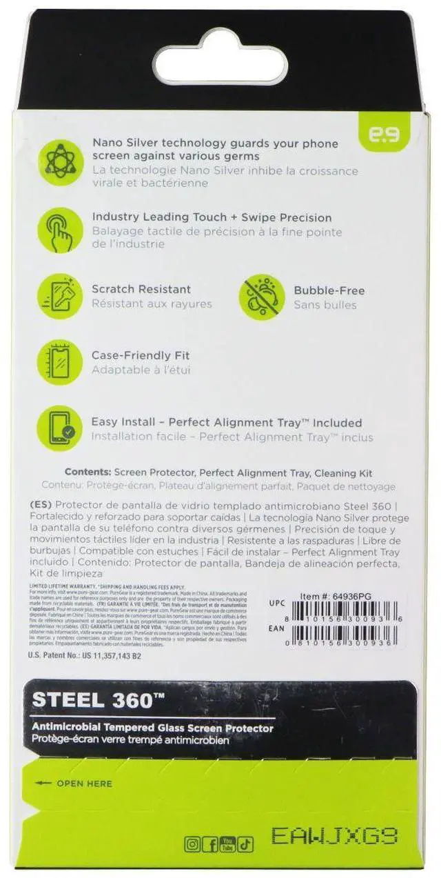 Features:Highest quality Japanese tempered glass with built-in Nano Silver Technology that guards your phone surface against various germsStrengthened and fortified to withstand dropsPremium quality, highly durable, and scratch resistantBubble-free engineered to adhere to your phone screen seamlesslyEasy to install with included patented Perfect Alignment TrayCase-friendly fit
