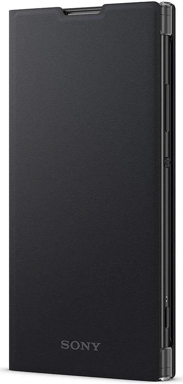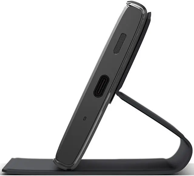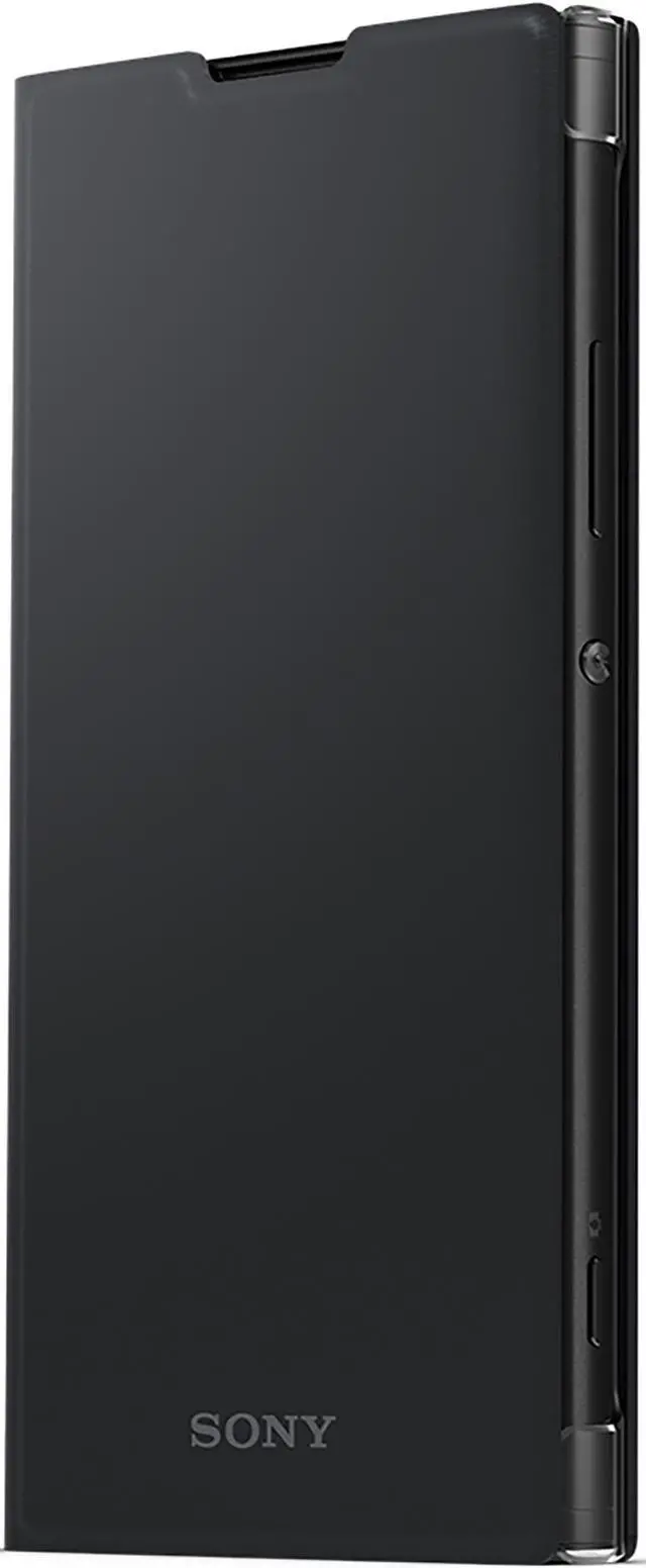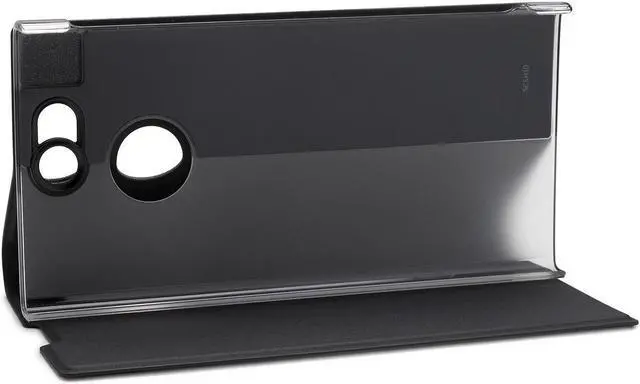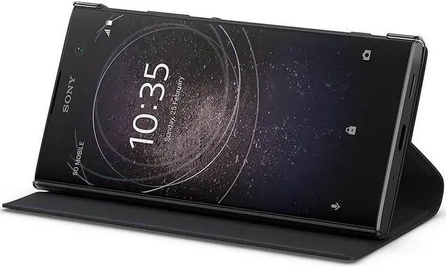 Designed to stand at the ideal viewing angle, itll also automatically pause whats playing when its closed. Hands-free entertainment, anywhere Folding back the soft, leather-look front will turn the cover into an adjustable stand. On everything from tables to trays, it props up your phone conveniently and comfortably. Form and function A perfect fit for Xperia XA2