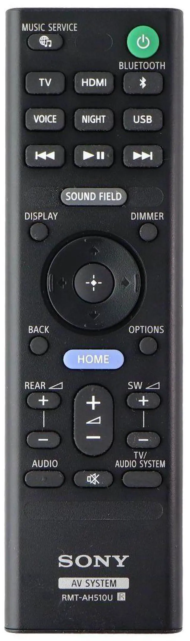 Sony OEM Remote Control (RMT-AH510U) AV System Remote, Black remote color. Requires 2x AAA batteries (No batteries included).