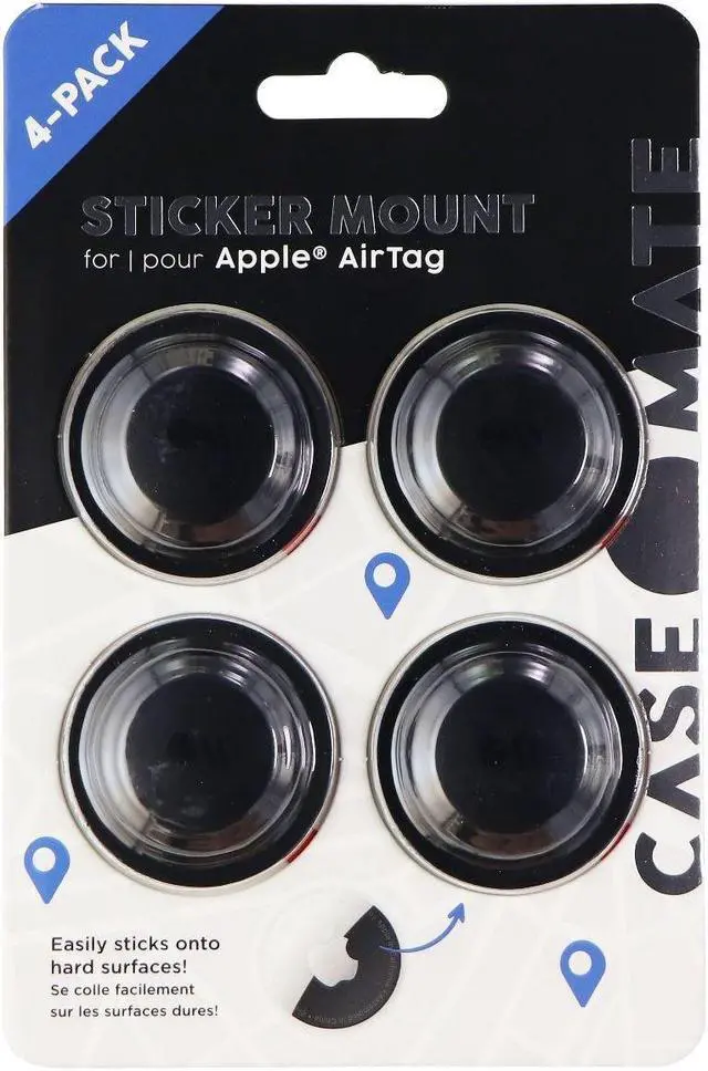 The Case-Mate Sticker Mount for Apple AirTag 4 Pack. Black mount color.