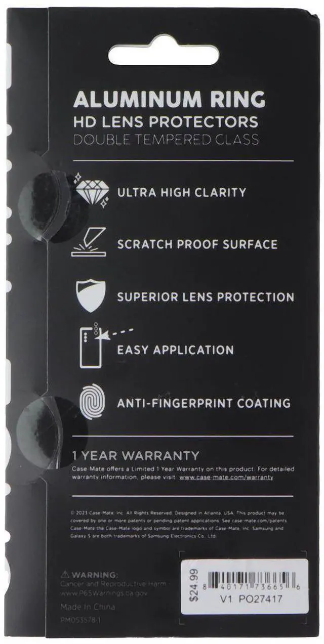 The Case-Mate Aluminum Ring HD Lens Protectors for Samsung Galaxy S24KEY_TAB Smartphones. Features:Ultra High ClarityScratch Proof SurfaceSuperior Lens ProtectionEasy ApplicationAnti-Fingerprint Coating