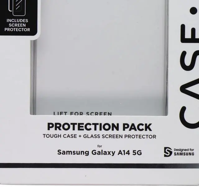 The Case-Mate Protection Pack Tough Case & Glass Screen Protector for Samsung Galaxy A14 5G. Clear Version. Features:12 Foot Drop ProtectionRaised Edges for Screen and Lens ProtectionIncludes Clear Case & Screen Protector