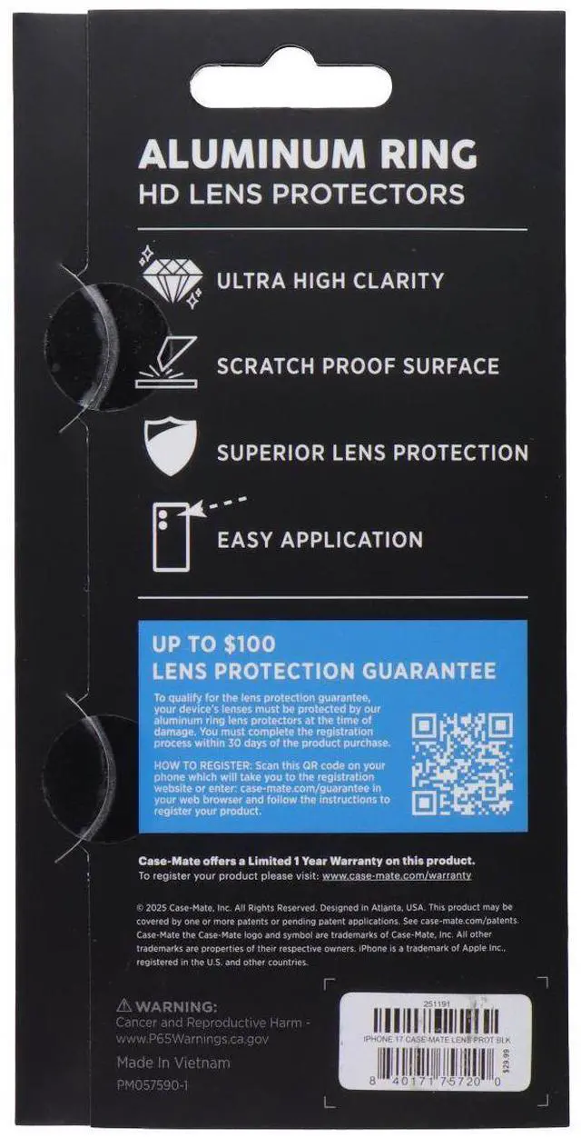 Case-Mate Aluminum Ring HD Double Tempered Lens Protectors for iPhone 17 - Black