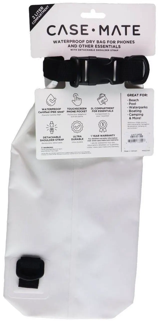 Case-Mate Waterproof Dry Bag for Phones with Detachable Shoulder Strap - White