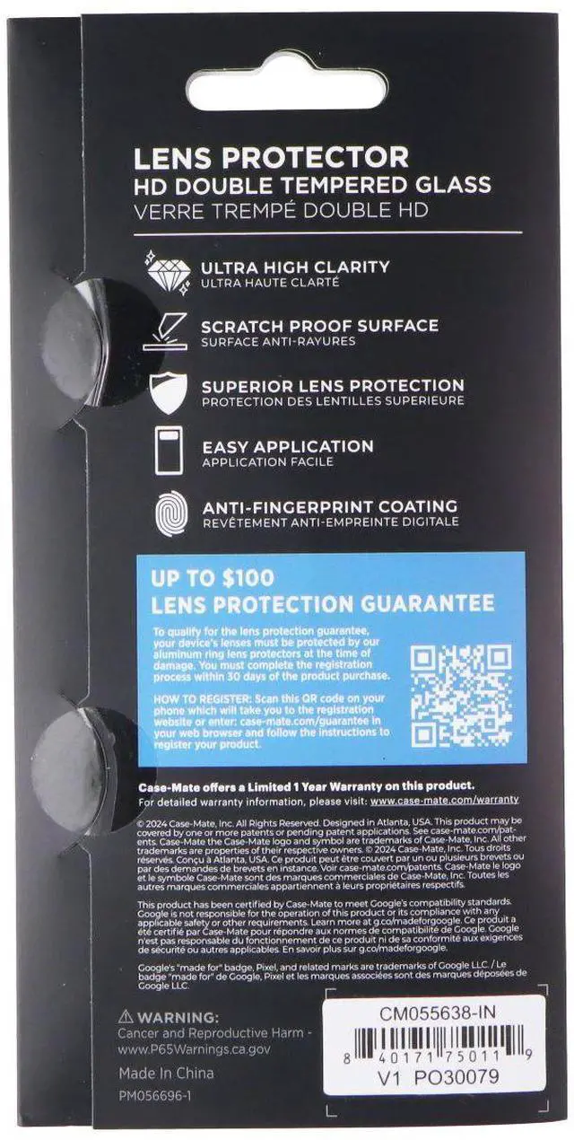 The Case-Mate Double Tempered Glass Lens Protector for Google Pixel 9a Smartphones.