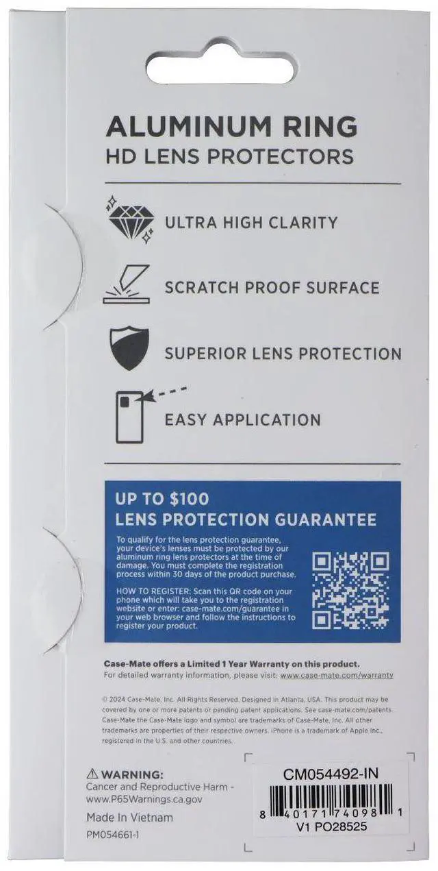Features:Fits iPhone 16 and iPhone 16 PlusIndividual Aluminum Rings Provide Dust And Dirt ProtectionUltra High ClarityScratch-Proof And Anti-Fingerprint Coatings