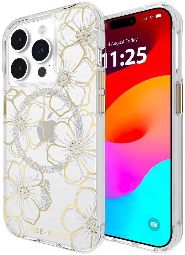 Elevate your iPhone 15 Pro with a case that blends fashion and protection. The Case-Mate Floral Gems case for the 6.1" iPhone 15 Pro delivers a slim, sparkly cover that keeps your phone stylish and shielded for everyday use.