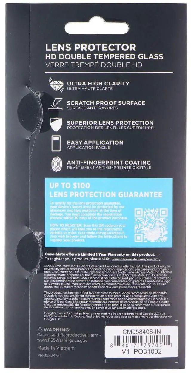 The Case-Mate Double Tempered Glass Lens Protector for Google Pixel 10 Pro XL Smartphones.