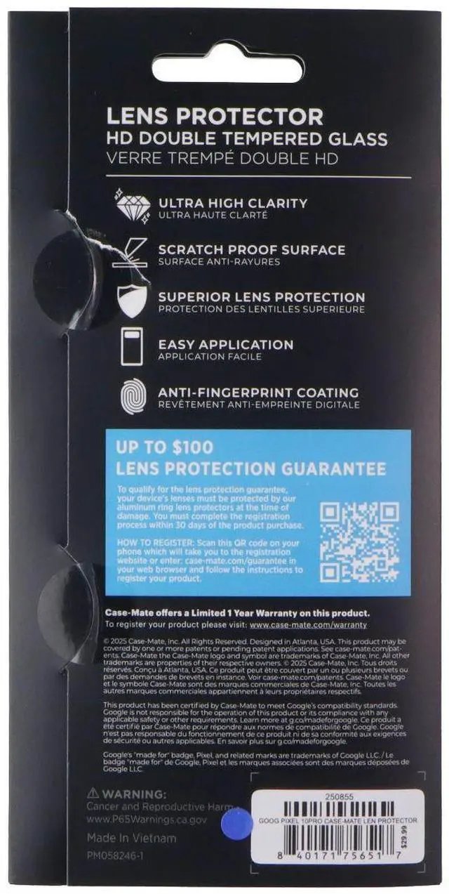 The Case-Mate Double Tempered Lens Protector for Google Pixel 10 Pro Smartphones.