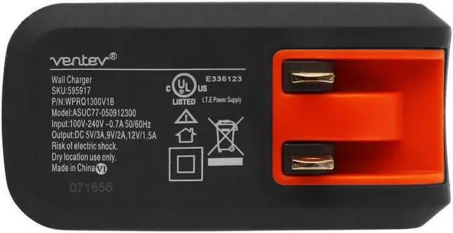 Ventev products, The Wallport RQ1300 Series Charger with Qualcomm Quick Charge 3.0 USB Wall Adapter and 3.3-Foot Flat Tangle Free Micro-USB Cable. Gray color design.
