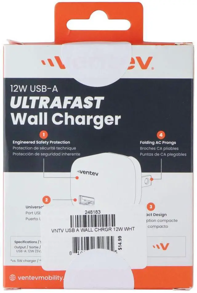 Ventev 12W USB-A Ultra Fast Mini Wall Charger - White