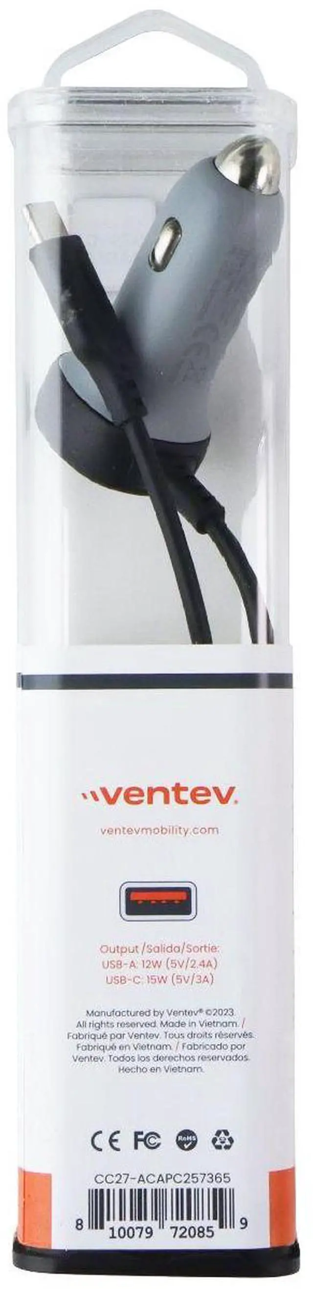 Ventev 27W Dual Car Charger (USB-A + USB-C) - Gray