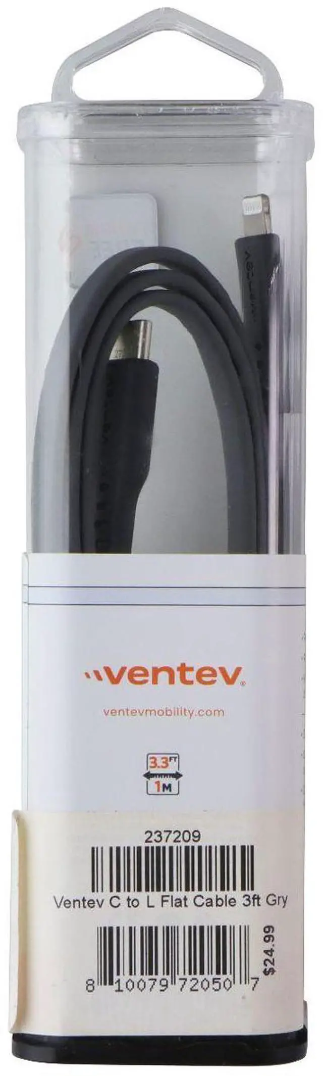 The Ventev 3.3-Foot USB-C to 8-Pin Flat Cable. Gray Version.