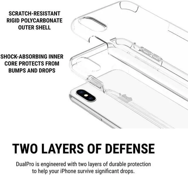 You love your iPhone XS MAX, so take the extra step to protect it from accidental bumps and drops with the DualPro-a case that's been keeping iPhones safe since Apple released its first generation. We built the DualPro case with two layers of military-grade protection that will help your phone survive up to 10-foot drops. Don't worry; two layers doesn't mean bulky-we designed the DualPro to be attractively slim, so you maintain the sleek, stylish look of your iPhone.. 2x layers of defense provides military-grade drop protection.