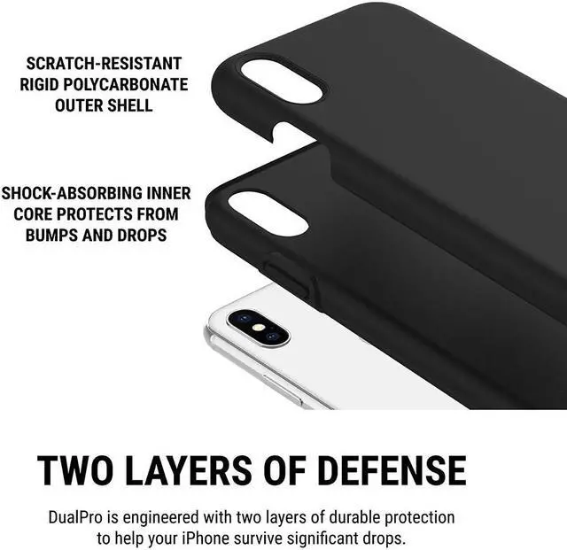 You love your iPhone XS, so take the extra step to protect it from accidental bumps and drops with the DualPro-a case that's been keeping iPhones safe since Apple released its first generation. We built the DualPro case with two layers of military-grade protection that will help your phone survive up to 10-foot drops. Don't worry; two layers doesn't mean bulky-we designed the DualPro to be attractively slim, so you maintain the sleek, stylish look of your iPhone.