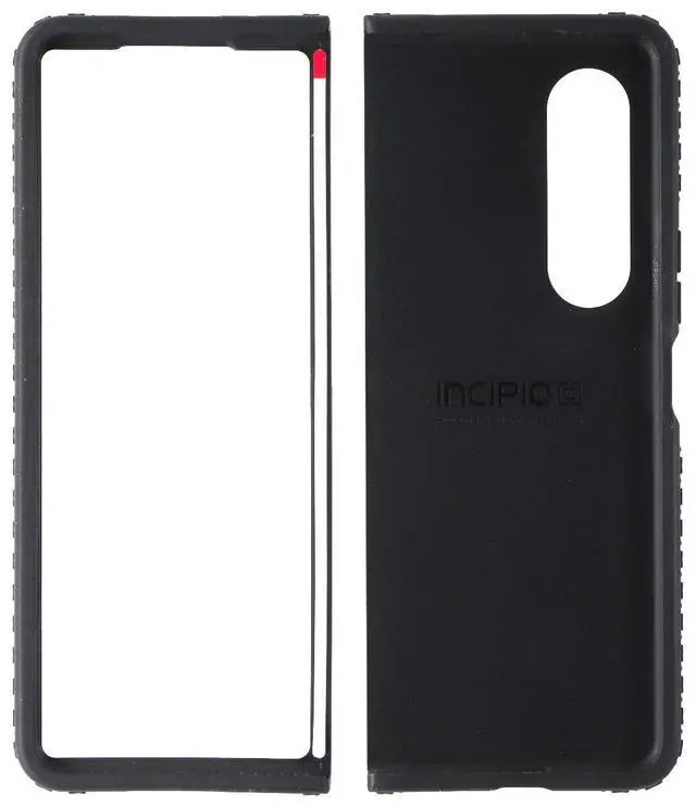 The Incipio Grip Series Case for Samsung Galaxy Z Fold3 5G. Black version. Features:Made in part with recycled materialsMulti-directional gripsImpact Struts protection technologyRaised-edge bezelWireless charging compatible