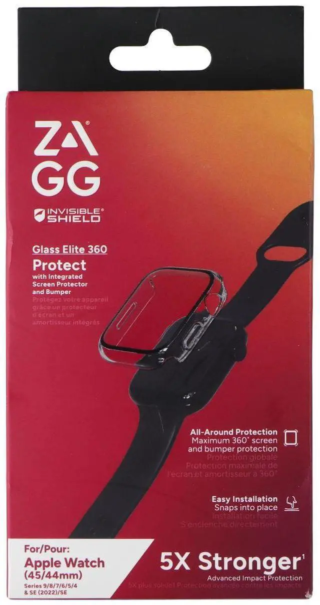 The ZAGG Invisible Shield Glass Elite 360 Bumper and Screen Protector for Apple Watch 45/44mm Watches.
