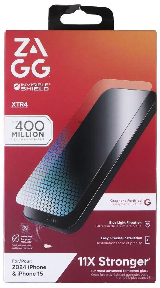 The ZAGG Invisible Shield (Glass XTR4) Screen Protector for Apple iPhone 16 / 15 Smartphones.