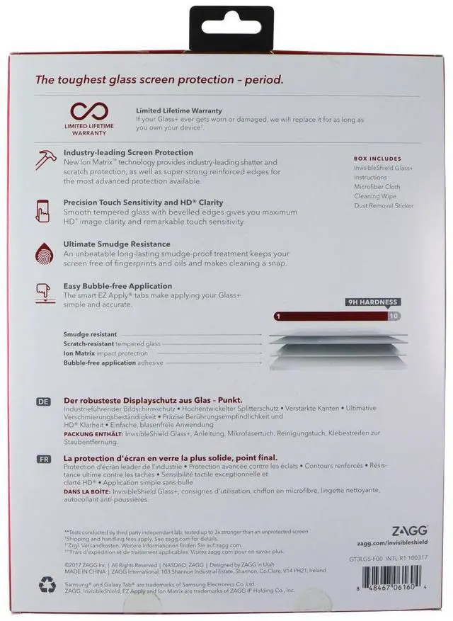 Scratch Resistant Glass+ easily withstands the rigors of daily use with smooth, tempered glass construction. The beveled edges ensure true full screen coverage, and the patented design defends against scratches