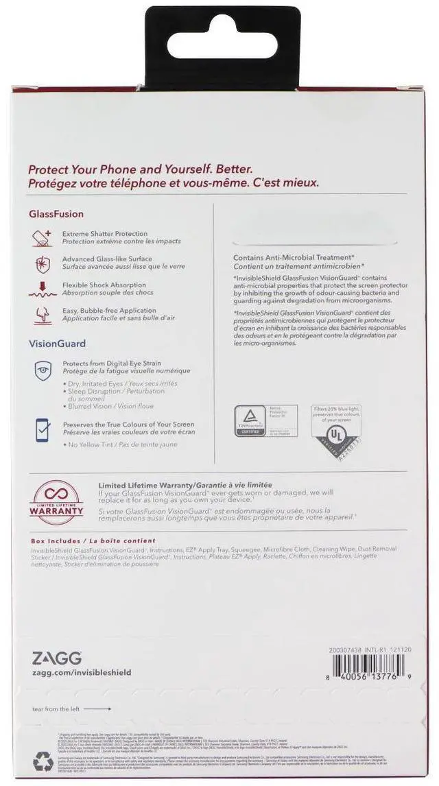 The InvisibleShield GlassFusion VisionGuard+ Screen Protector for Galaxy S21+ 5G.