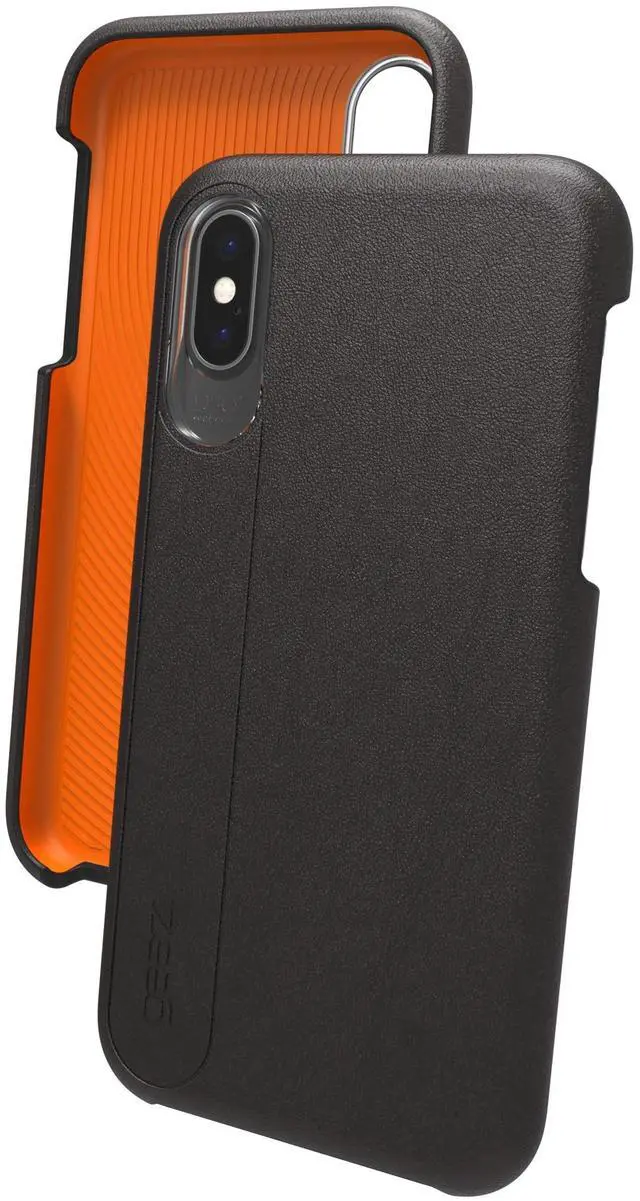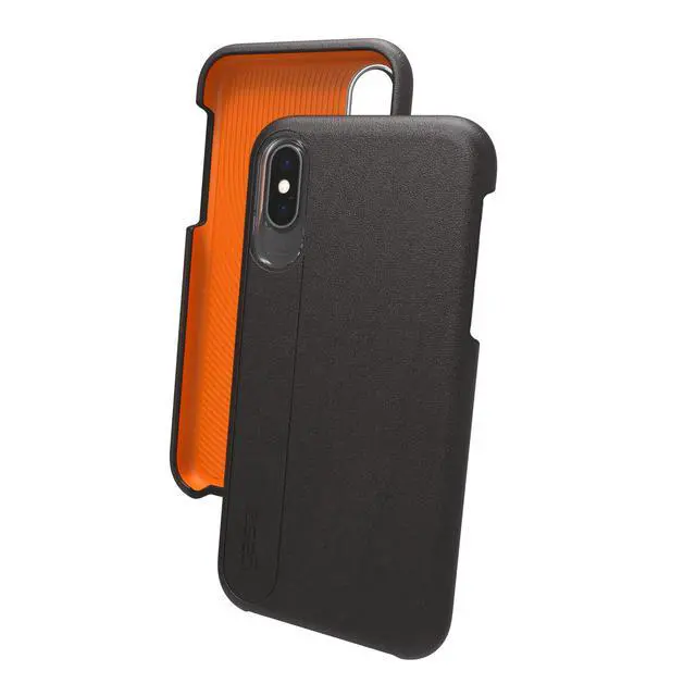 Protect your iPhone X/Xs with the Gear4 Knightsbridge Leather Case ? a refined, slim-fitting cover that pairs premium black leather with industry-leading D3o impact protection to guard your device from daily drops without sacrificing style.