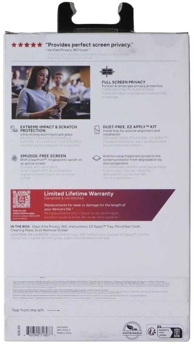 ZAGG Invisible Shield 4-Way Privacy 360 Screen Protector for iPhone 16/15 Plus