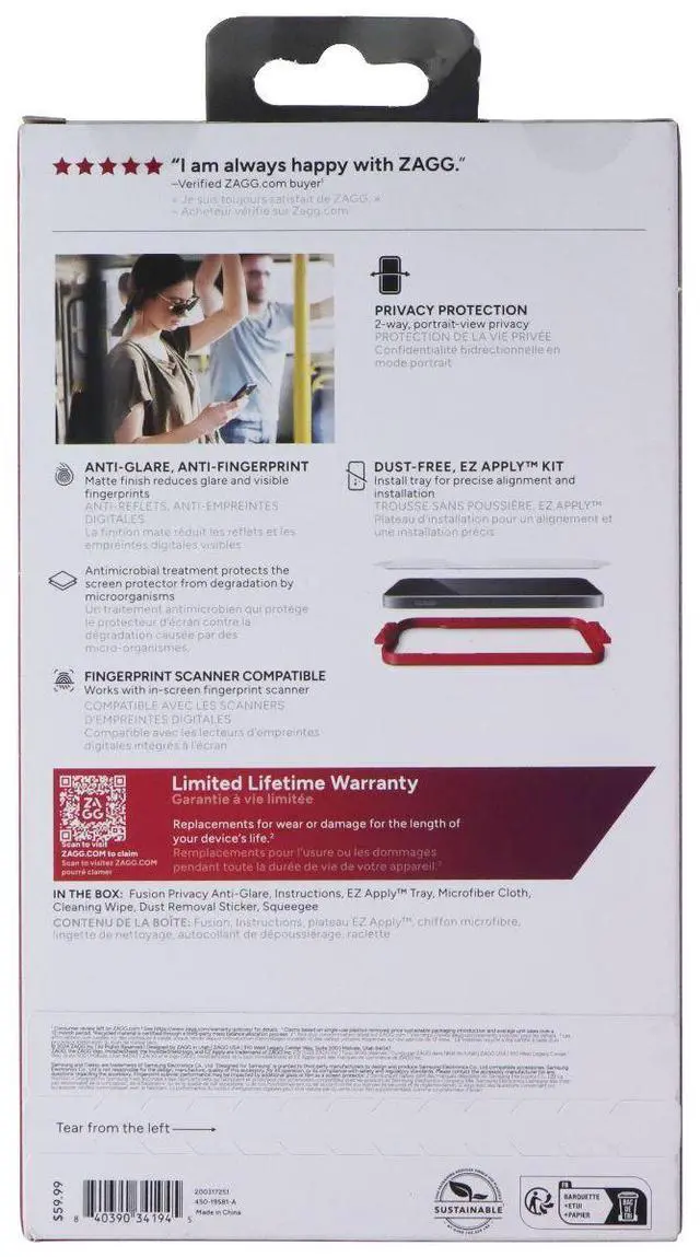ZAGG Fusion Privacy Anti-Glare Series Screen Protector for Samsung Galaxy S25 Ultra.
