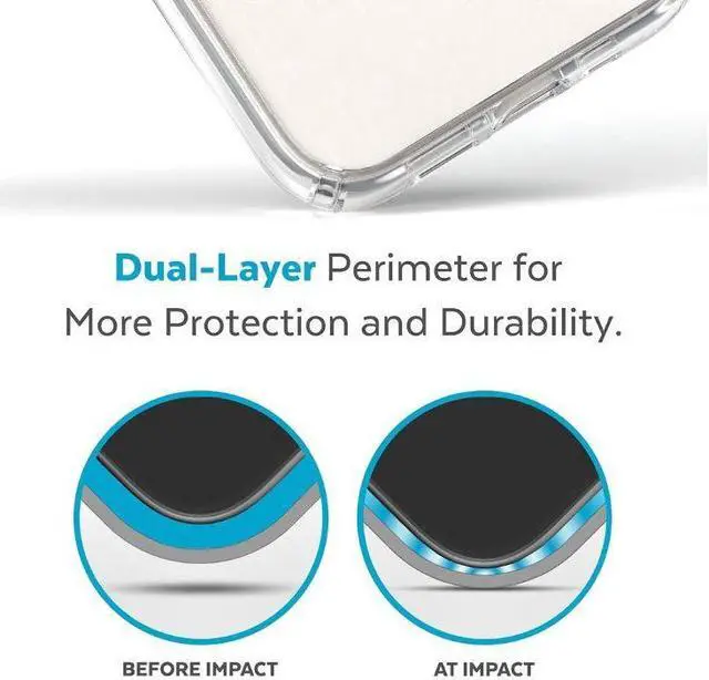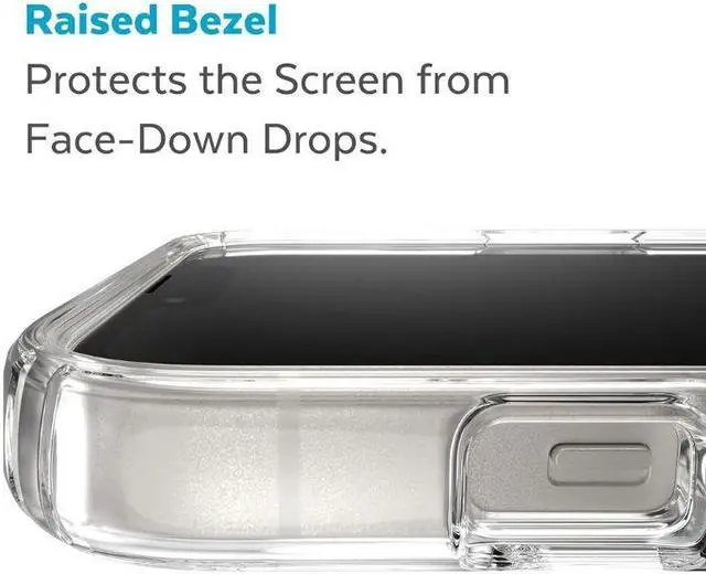 Our innovative materials allow us to create a case that stays perfectly clear longer. Highly protective, yet slim, this case is pocket-friendly and compatible with all Apple MagSafe® products, so you can recharge with no strings attached. Clearly stylish, but its also built tough for lifes rough moments with our clear impact technology. Our proprietary, clear phone-cushioning rubber compresses on impact to protect your phone and resist damage. Naturally, our Presidio Perfect case is real-world tested to withstand drops up to 13 feet. So, no matter what happens, you can be confident youre protected.