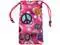This groovy little drawstring pouch will keep all of your mobile phone necessities close at hand. Perfect for headsets, chargers, memory cards, cables and more! The interior is lined with a soft fabric, while the exterior features some far out hand crafted stitching! Ideal for travel, the glove box or sliding into your purse or pocket!