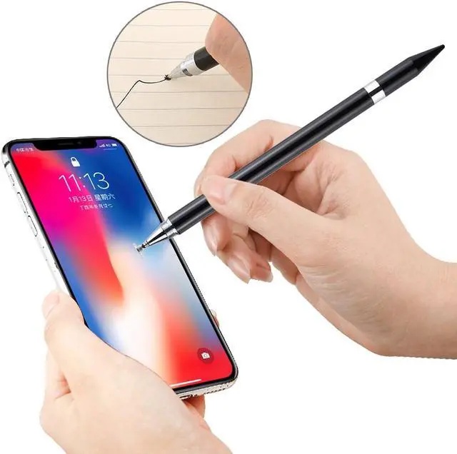Features: Great for reducing fingerprints on your touch screen enabled device. The soft tip on the end of the stylus will not damage your touch screen device. 2 in 1 Stationery Writing Tools Metal Ballpoint Pen.