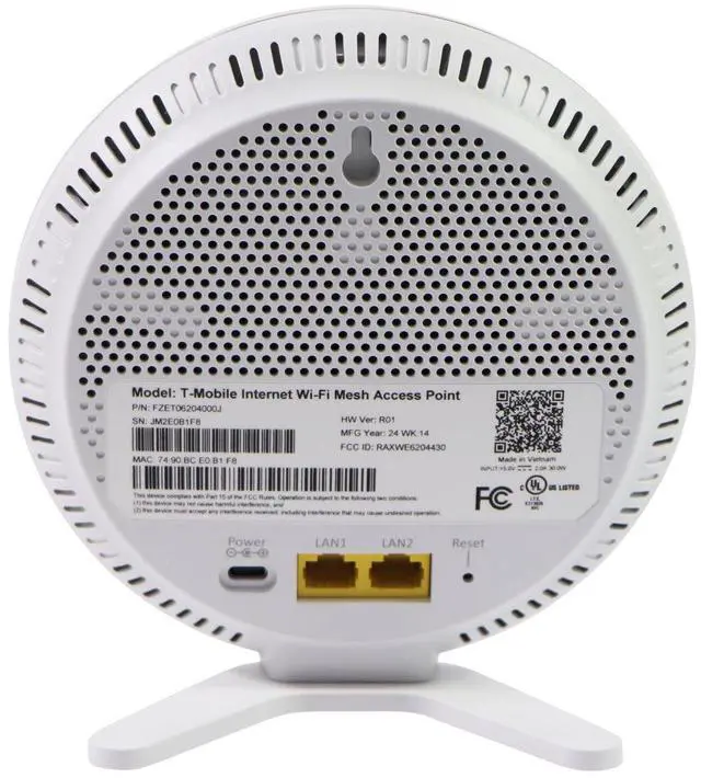 Features:Acts as a mesh node to expand Wi-Fi coverage and reduce dead zonesDual-band support (2.4 GHz + 5 GHz) for compatibility and performanceTwo LAN ports lets you connect wired devices or backhaul the mesh via EthernetKEY_TAB Supports the 802.11ac standard (Wi-Fi 5)Power input: 100240 V AC; output: 15 V DC; typical consumption ~30 WDimensions: approx. 165 × 165 × 33 mm (about 6.5 × 6.5 × 1.3)Designed to work alongside T-Mobiles 5G Gateway to improve home Wi-Fi coverage