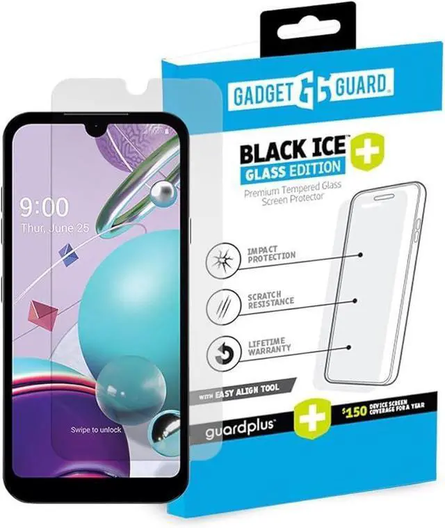 The Gadget Guard Black Ice Tempered Glass Screen Protector for LG K8x and K31 Smartphones. Clear glass design. The optical grade tempered glass is incredibly strong, scratch resistant and treated to repel annoying smudges.