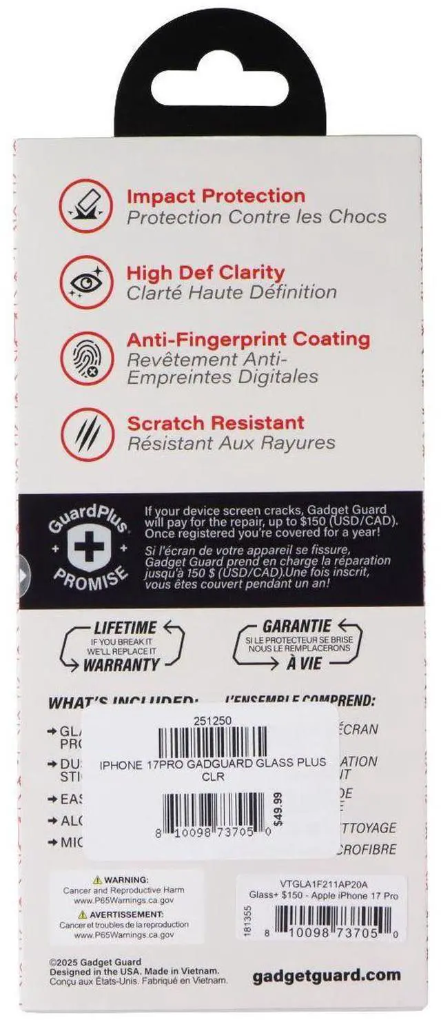 The Gadget Guard Glass Series Screen Protector for Apple iPhone 17 Pro. Clear Finish.