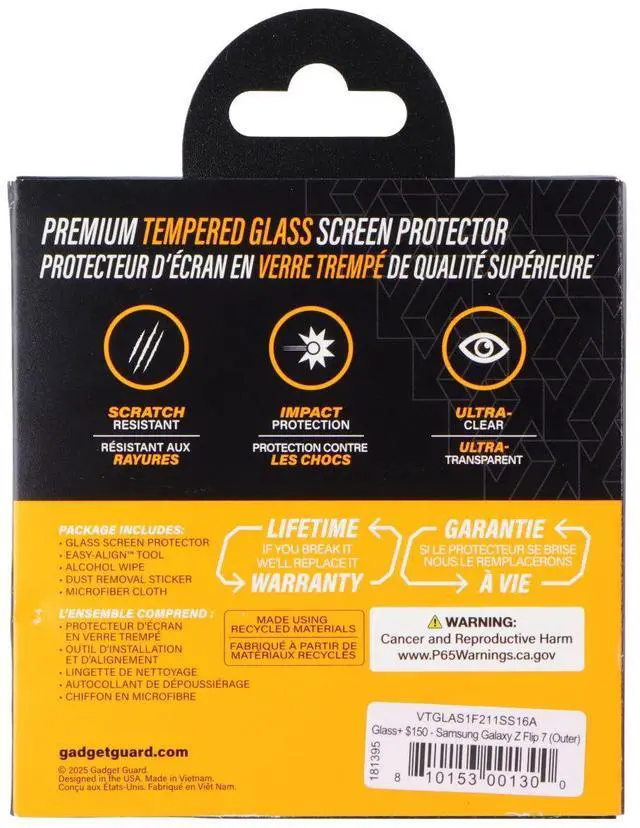 The Gadget Guard Glass Screen Protector for Samsung Galaxy Z Flip 7 (Outer).